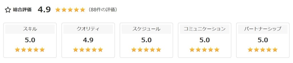 クラウドワークスの評価とクライアント様からいただいた口コミを一部記載いたします。